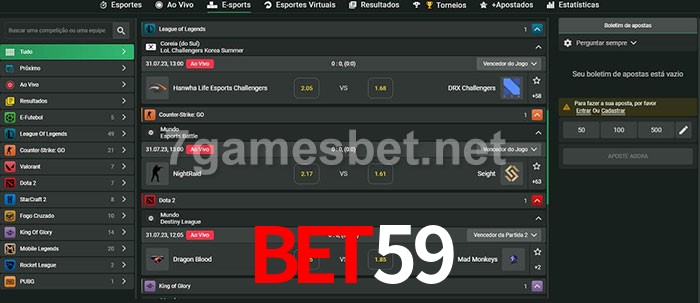 A aposta Bet59 oferece aos jogadores a experiência mais conveniente de apostas em eSports!